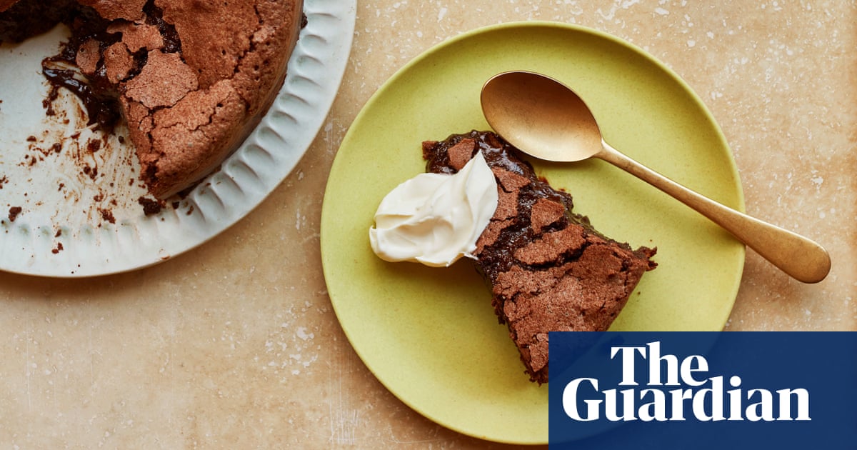 Heat the oven to 180C (160C)/350F/gas 4 and line a 25cm cake tin with greaseproof paper.