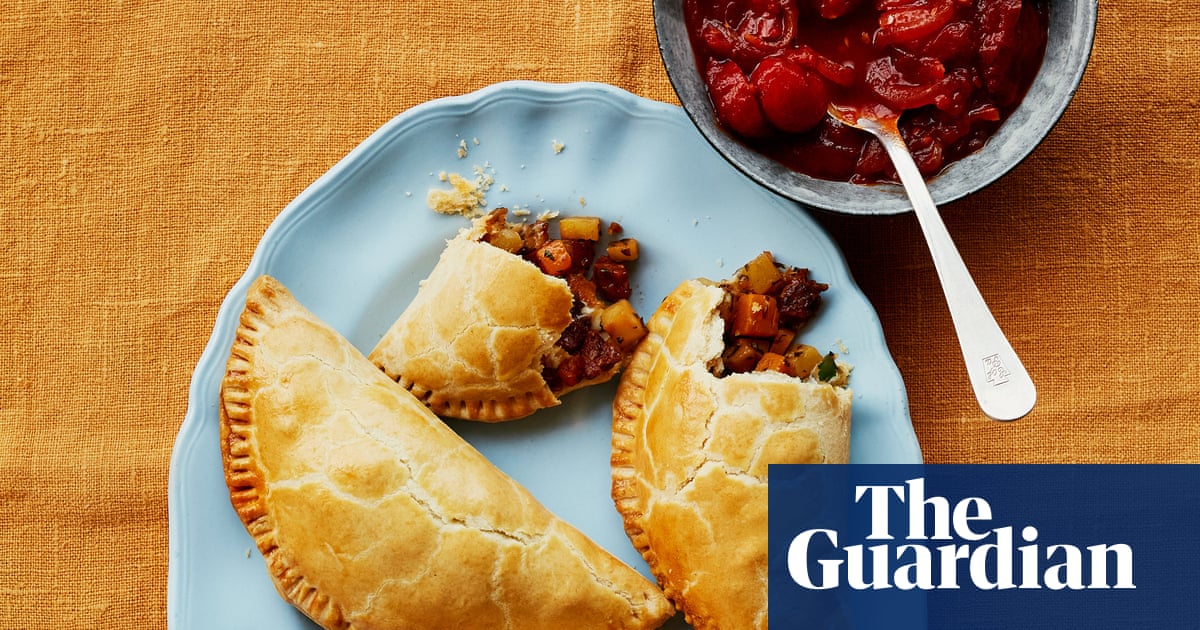 Heat the oven to 200C (180C fan)/390F/gas 6, and line two baking sheets with greaseproof paper. Put four empanadas on each tray, brush all over with the beaten egg, then bake for 30 minutes, until golden brown. Remove, leave to cool for 10 minutes and serve warm with the relish, or leave to cool to room temperature and serve later.